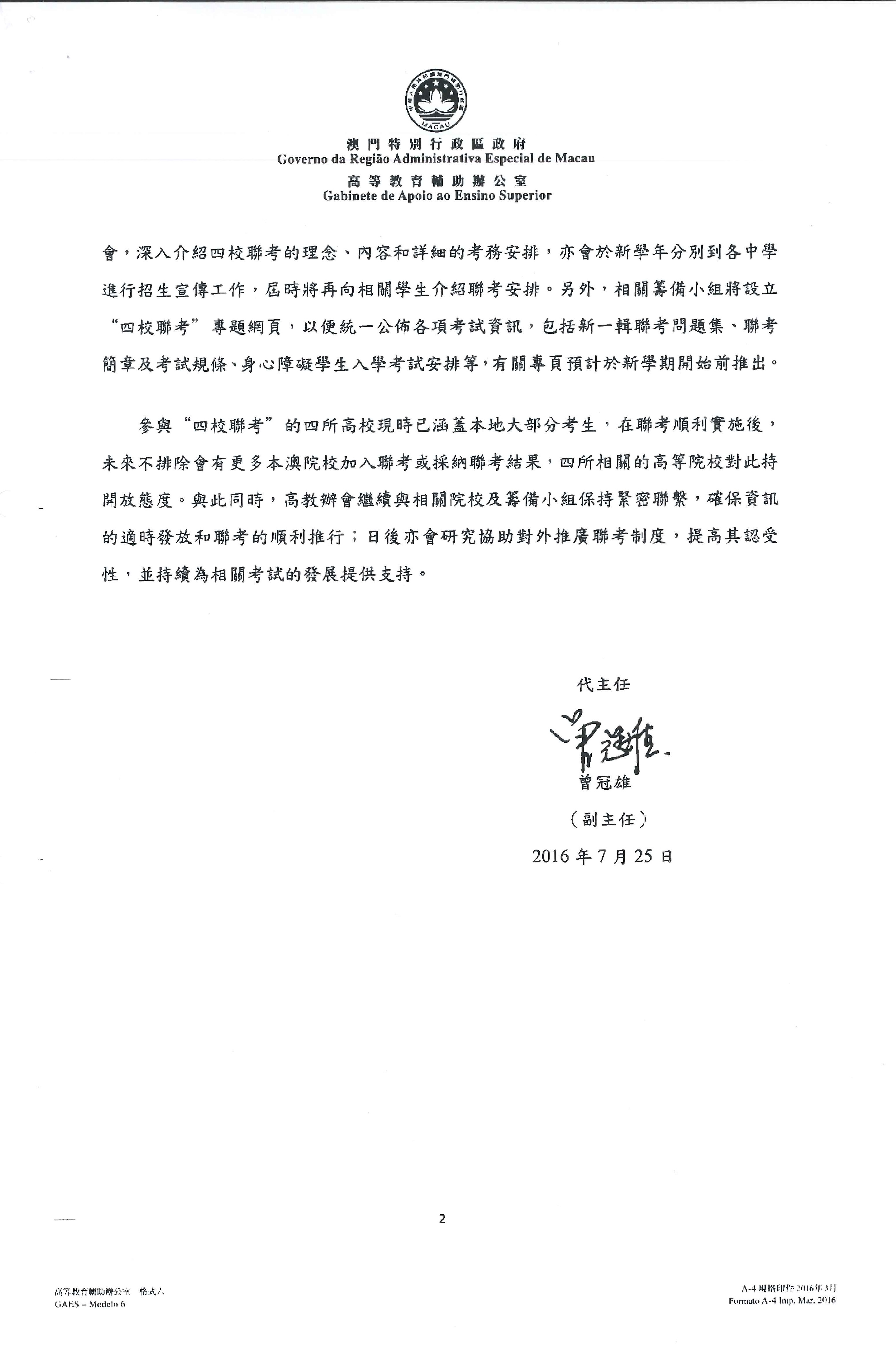 2016.7.25書面質詢回覆—關注四校聯考制度的進展 wmss | 2016 年 07 月 25 日 | 書面質詢回覆, 第五屆立法會黃潔貞, 議政論政 | 尚無留言 Tags:兒青教育, 婦聯, 書面質詢回覆, 立法會, 黃潔貞 Related Posts 2016.5.20書面質詢回覆—促儘早實現器官捐贈 尚無留言 | 5 月 20, 2016 2015.01.23 黃潔貞促立法消除歧視增家庭和諧 尚無留言 | 1 月 23, 2015 2017.06.04 重新認識黃潔貞(一):從護士成為議員 尚無留言 | 6 月 4, 2017 2016.6.30 黃潔貞:促政府盡快落實多項步行系統計劃 尚無留言 | 6 月 30, 2016 About The Author 黃潔貞